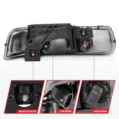 ANZO 1988-1998 Chevrolet C1500 Crystal Headlights Black w/ Low - Brow
