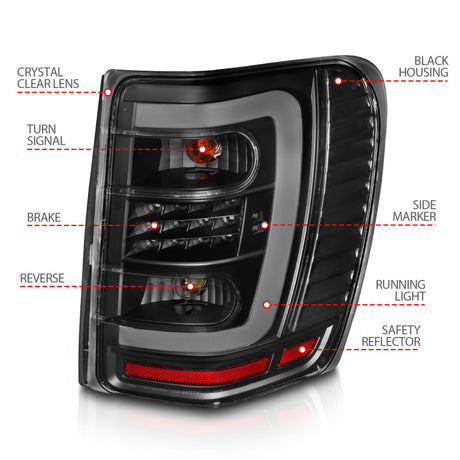 ANZO 1999-2004 Jeep Grand Cherokee LED Tail Lights w/ Light Bar Black Housing Clear Lens