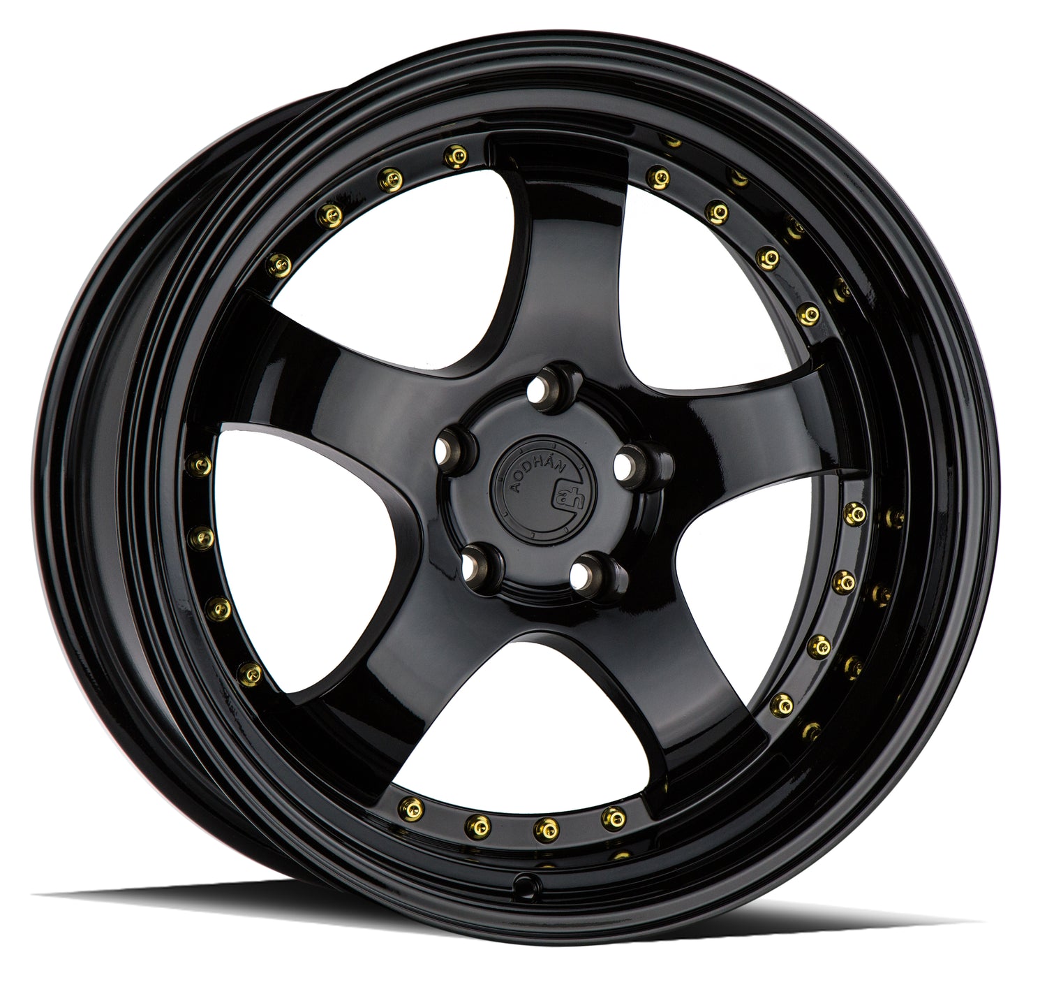 Aodhan AH03 18X9.5 5X114.3 +30 Offset Wheel - Gloss Black W /Gold Rivets