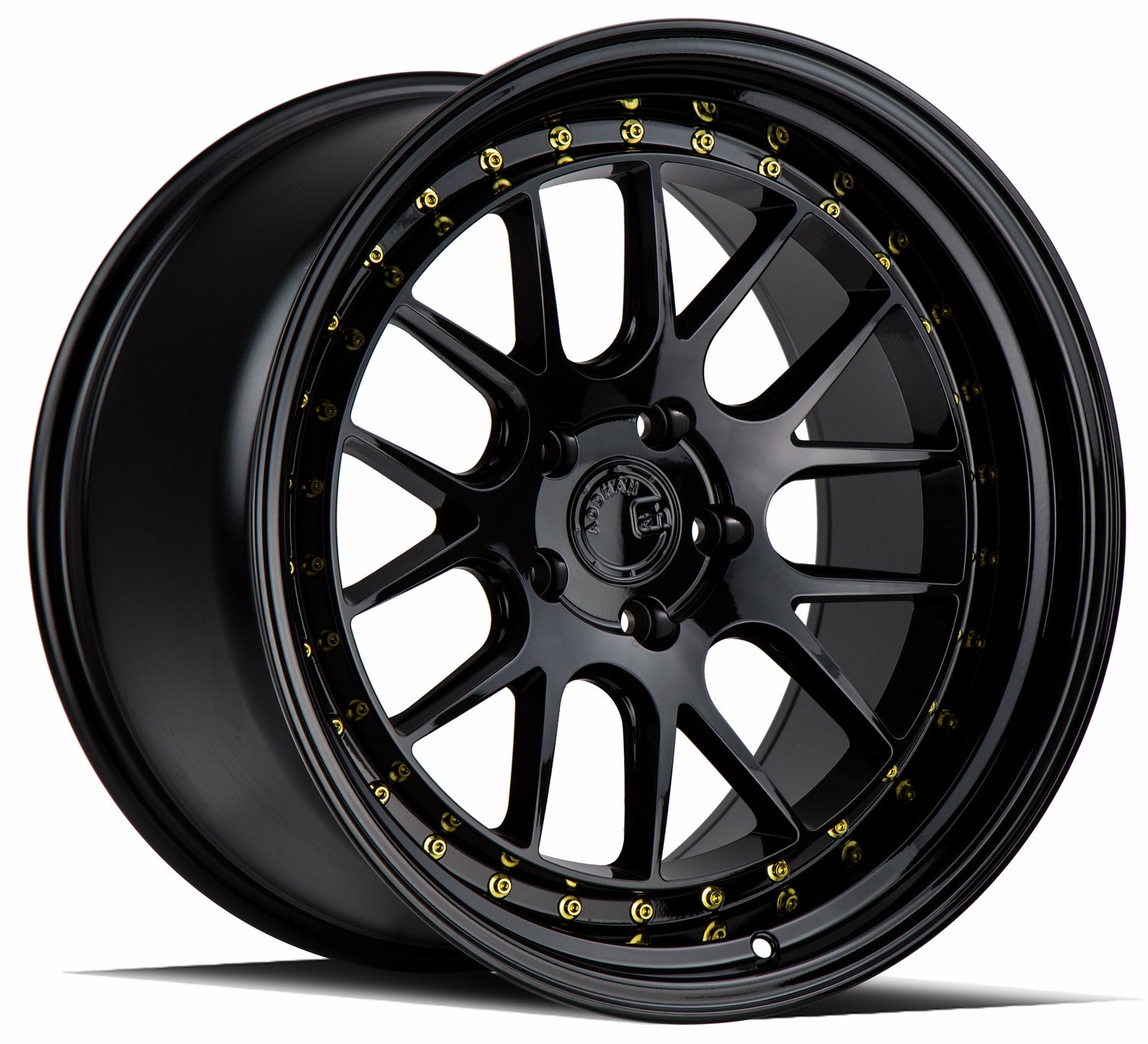 Aodhan DS06 19X11 5X114.3 +22 Offset Wheel - Gloss Black W /Gold Rivets
