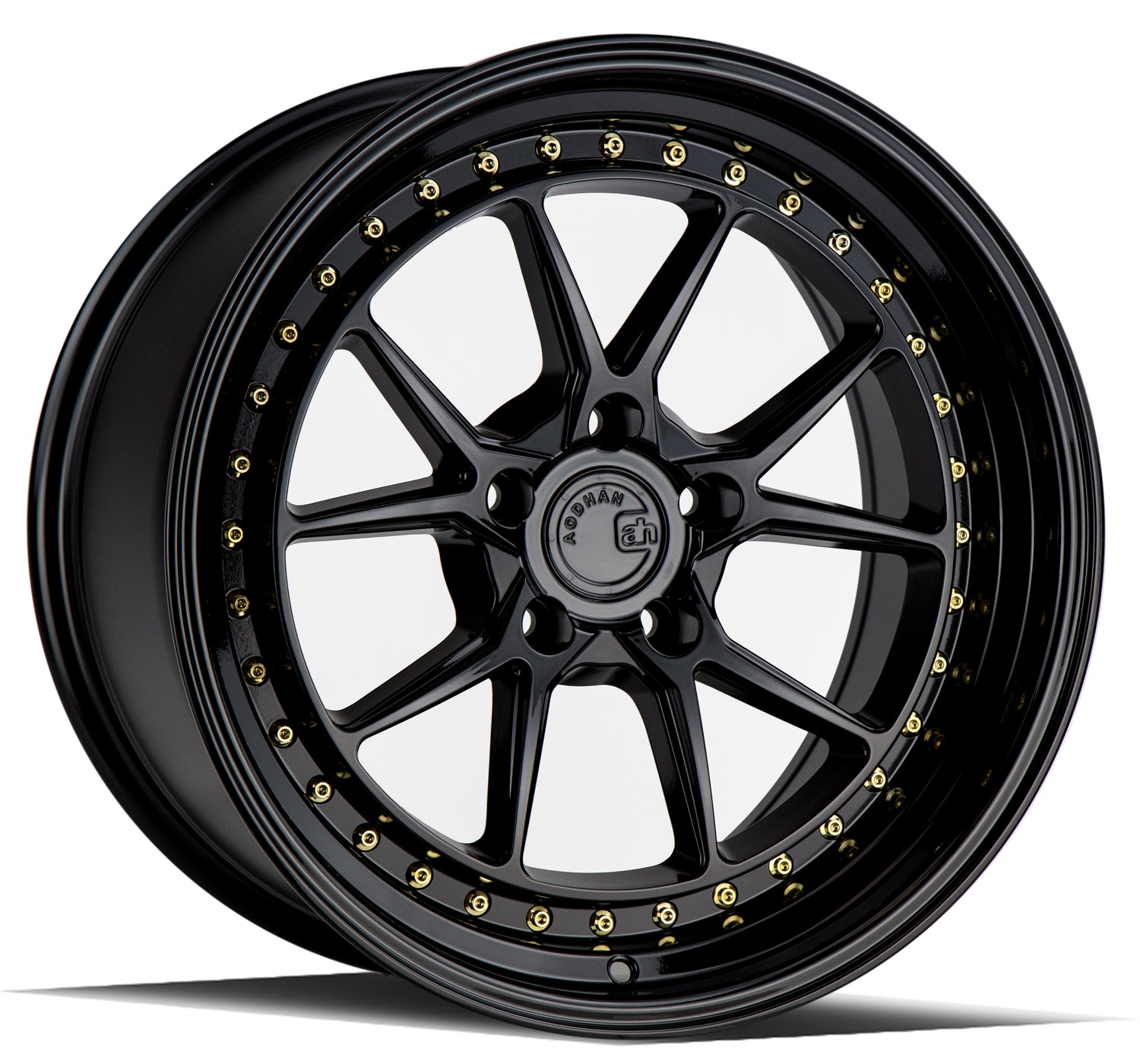 Aodhan DS08 18X9.5 5X114.3 +22 Offset Wheel - Gloss Black W /Gold Rivets