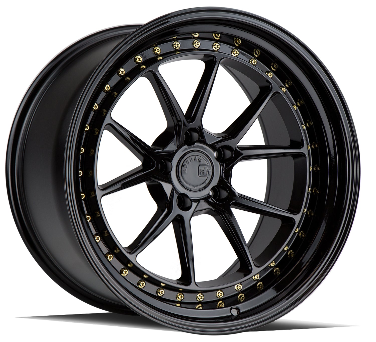 Aodhan DS08 19X11 5X114.3 +15 Offset Wheel - Gloss Black W /Gold Rivets