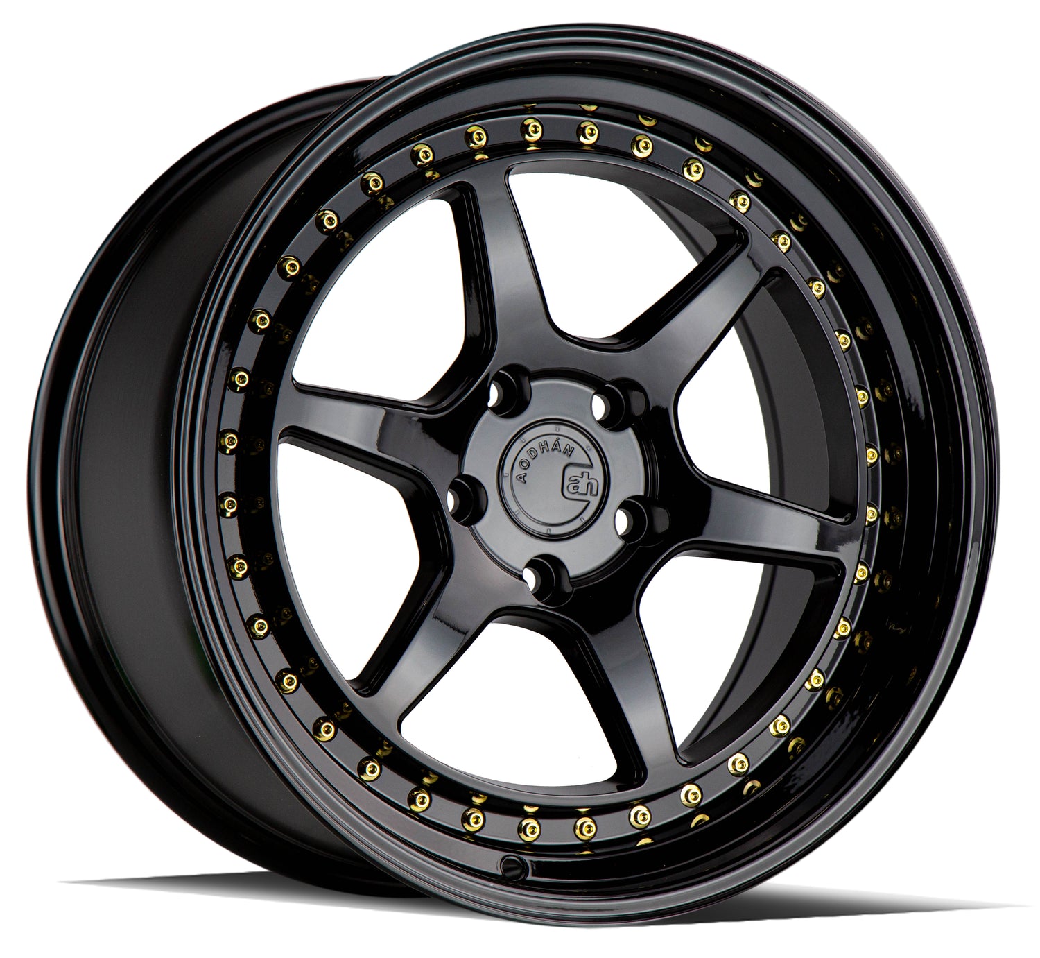 Aodhan DS09 18X9.5 5X114.3 +22 Offset Wheel - Gloss Black W /Gold Rivets