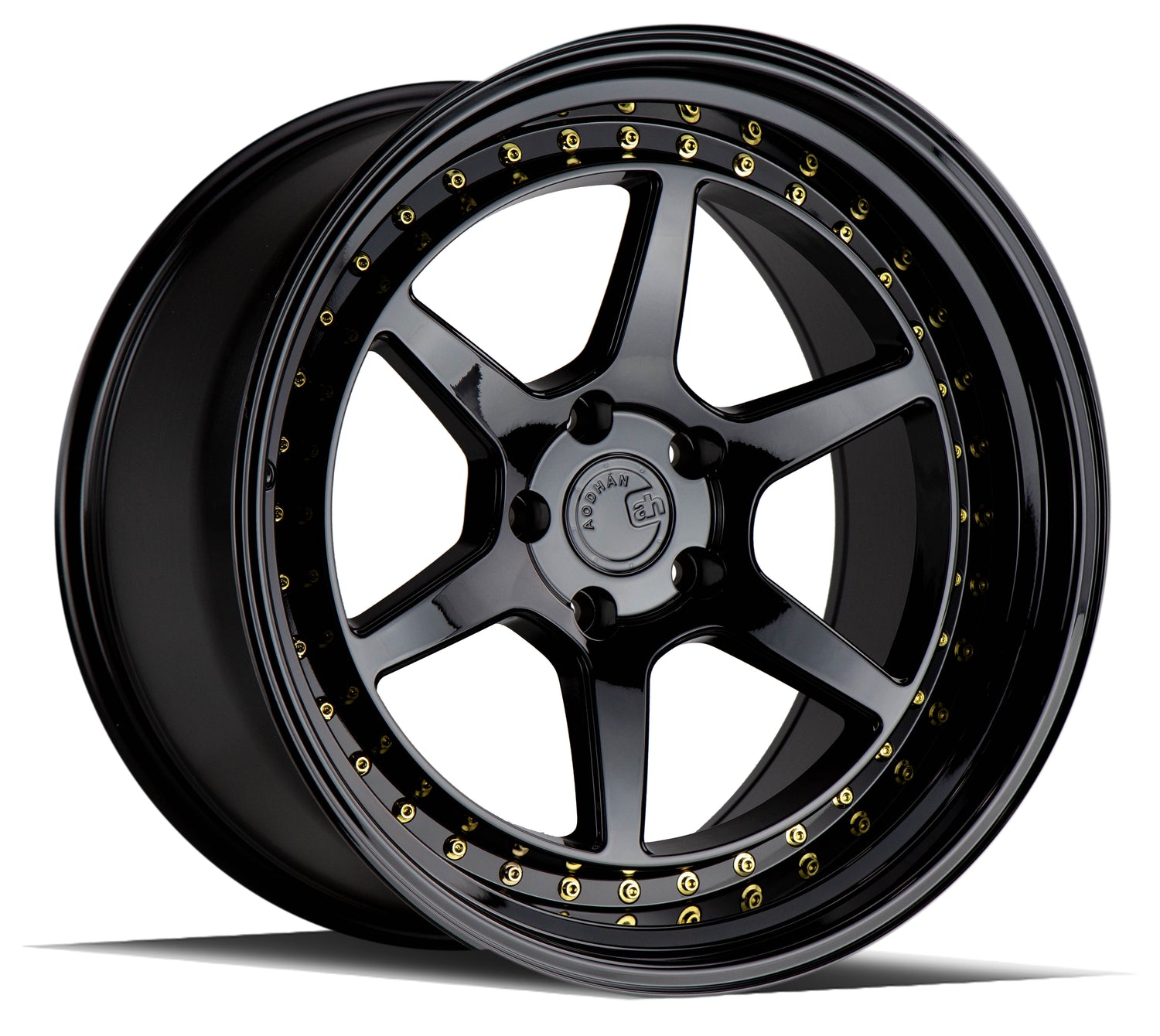 Aodhan DS09 19X9.5 5X114.3 +22 Offset Wheel - Gloss Black W /Gold Rivets