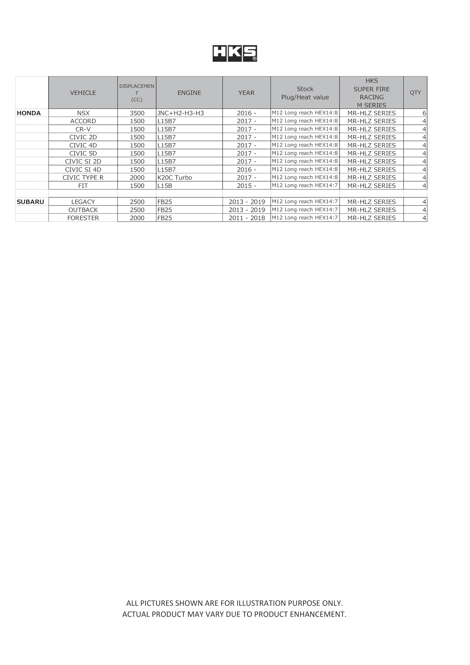 HKS Super Fire Racing Spark Plug 1QTY MR45HLZ is backordered and will ship as soon as it is back in stock.