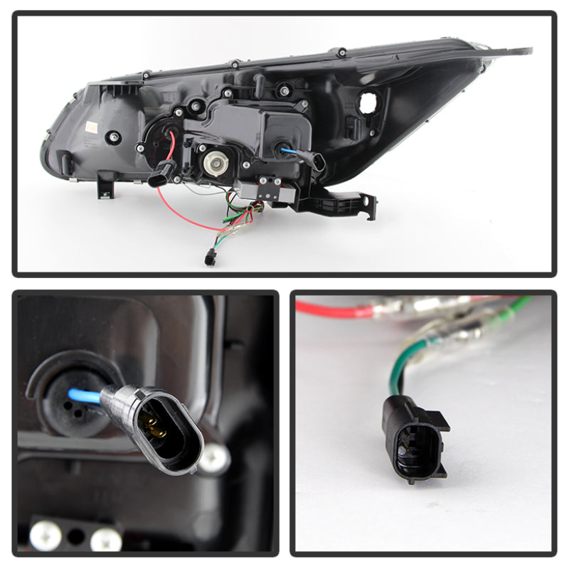Spyder Honda Accord 2013-2015 4DR Projector Headlights Light Bar DRL Black PRO-YD-HA13-LBDRL-BK